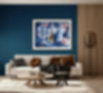 Against a shifting blue gradient, two figures — a man and a woman — occupy opposing edges of the canvas. Their forms, set among intricate geometric shapes and patterns, holding one another in balance no matter how the work is turned. In any orientation, the composition remains whole. It is a meditation on mutual support: an ever-changing puzzle, unique to each relationship, defined as much by perspective as by presence.